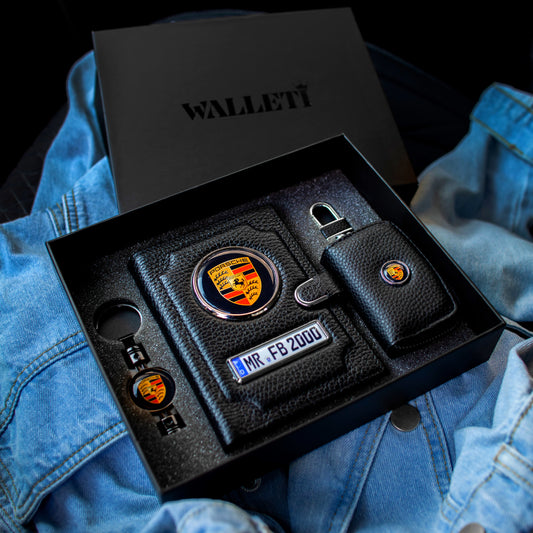Preț special aziSet: Portofel + breloc+ husă chei+cutie