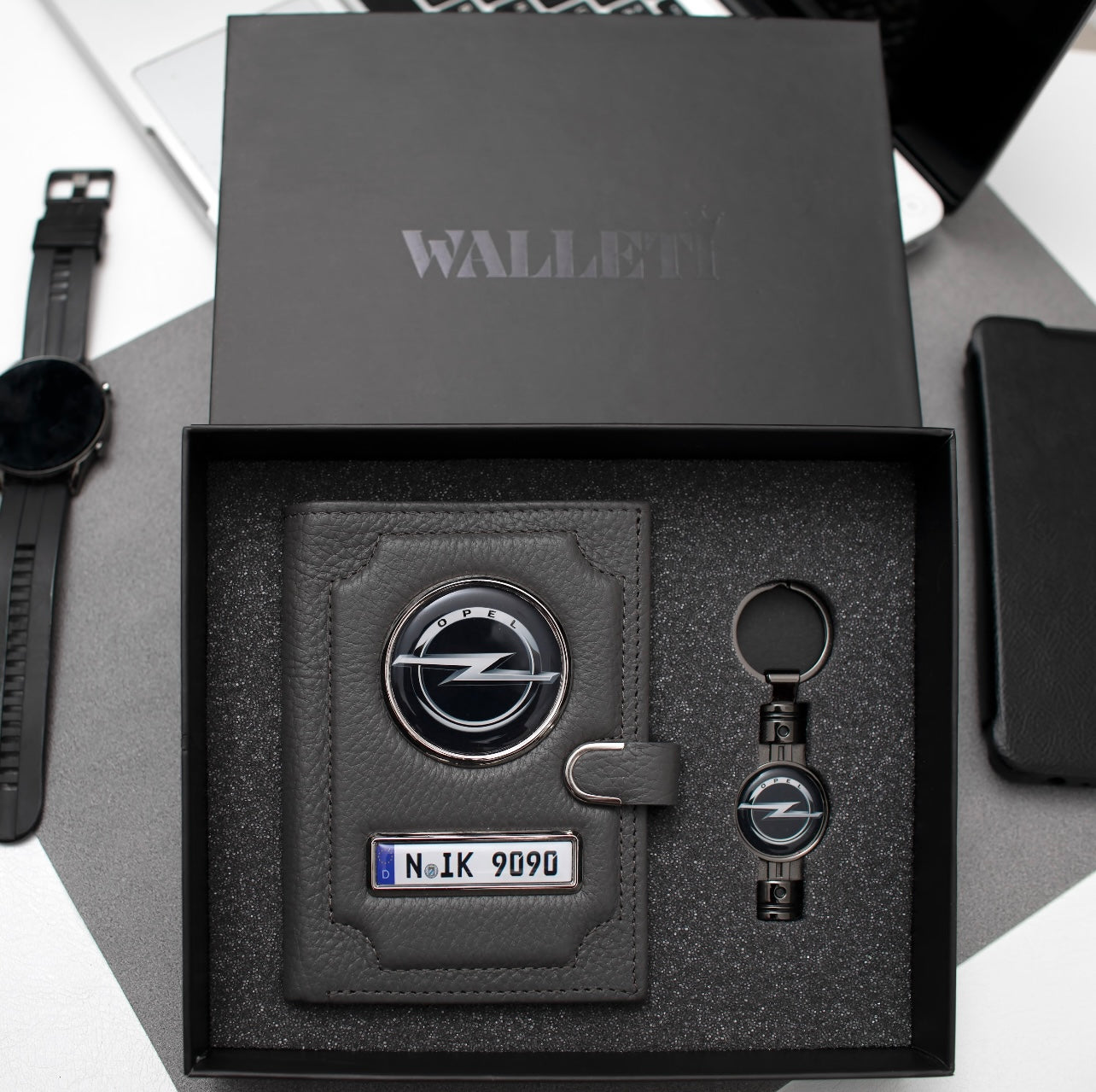 Vreau portofelul cu marca mașinii, dar brelocul cu poza familiei. Cum fac comanda corect?