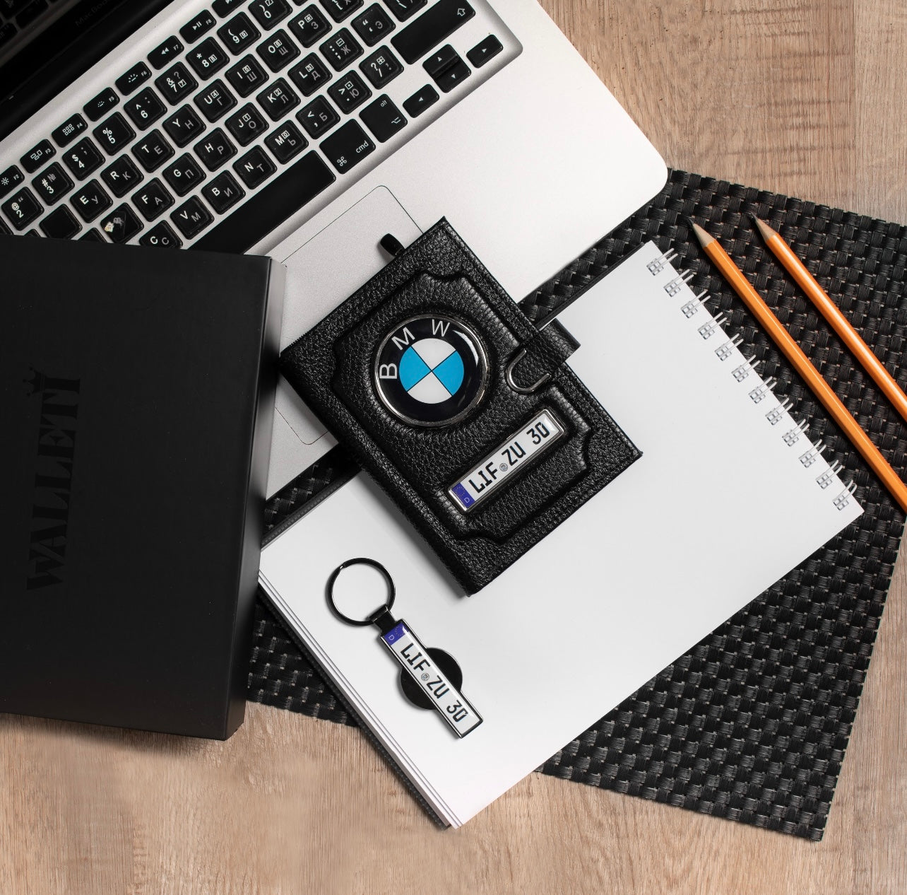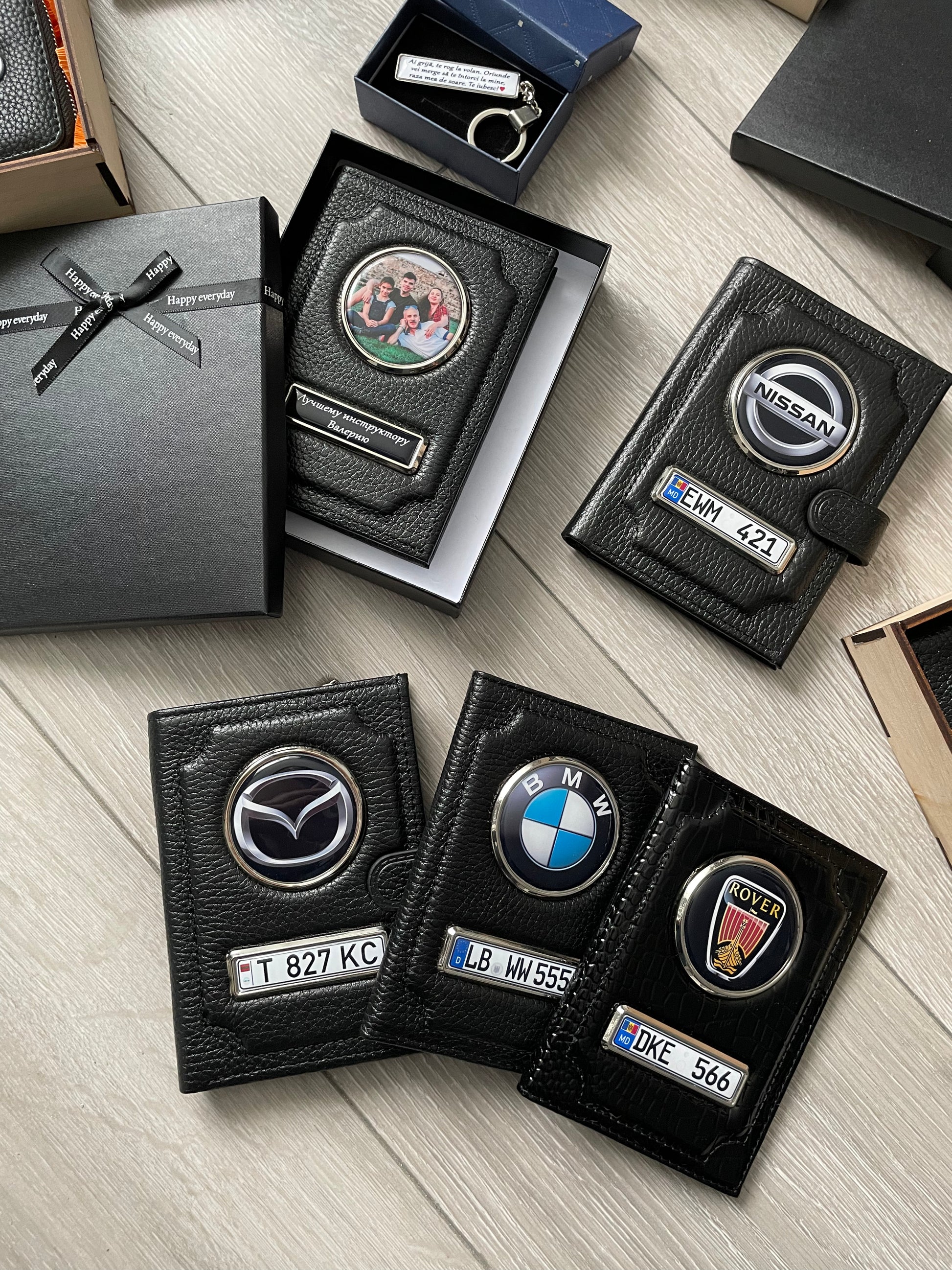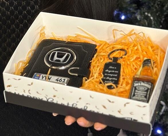 Vreau portofelul cu marca mașinii, dar brelocul cu poza familiei. Cum fac comanda corect?