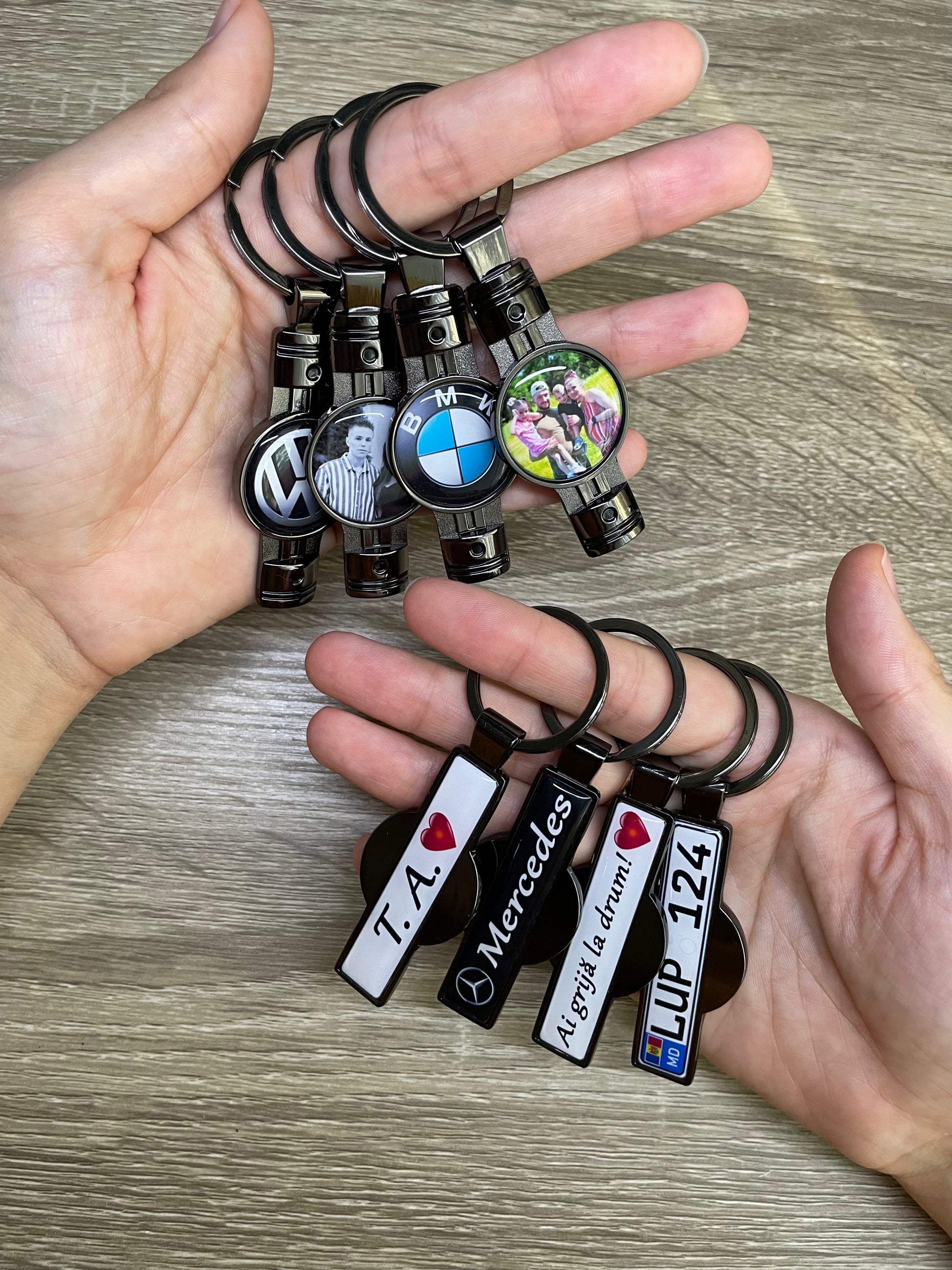 După ce finalizezi comanda, te contactăm pe WhatsApp și acolo trimiți poza, marca mașinii și textul pentru breloc.